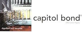 Capitol Bond® Use Capitol Bond® to add traditional elegance and sophisticated refinement to your project. There is nothing like the elegant look and feel of a cotton paper. They deliver contemporary flexibility and supreme printability for offset press and digital applications. |